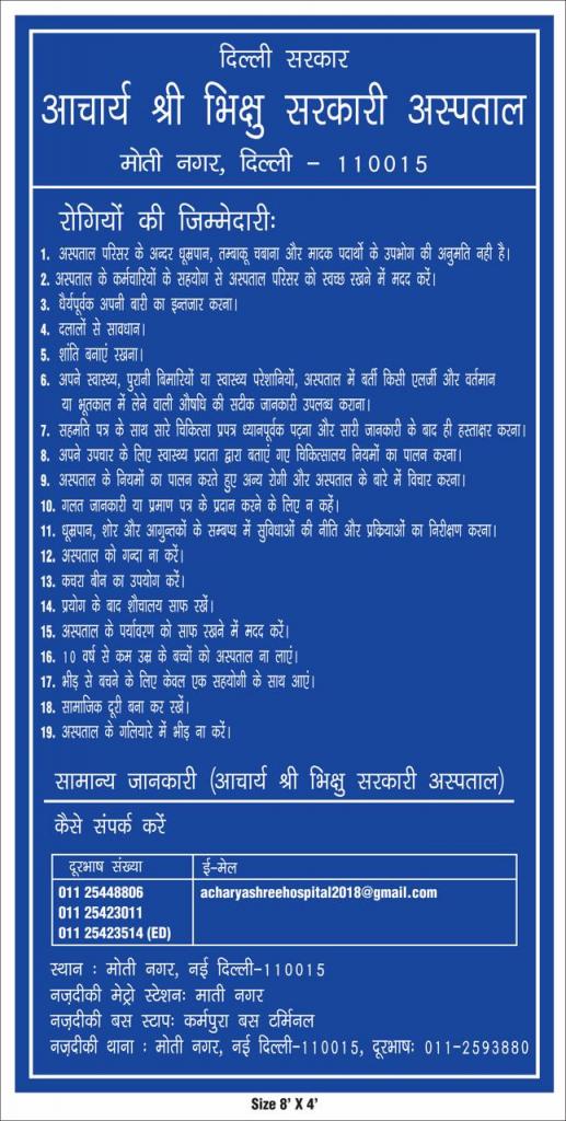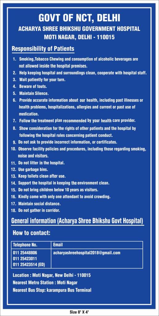 This is an 150 bedded secondary level hospital established in 1996 with the objective of providing preventive, curative and promotive health services to public residing in and around Moti Nagar. Services are provided as per the need of the patients.